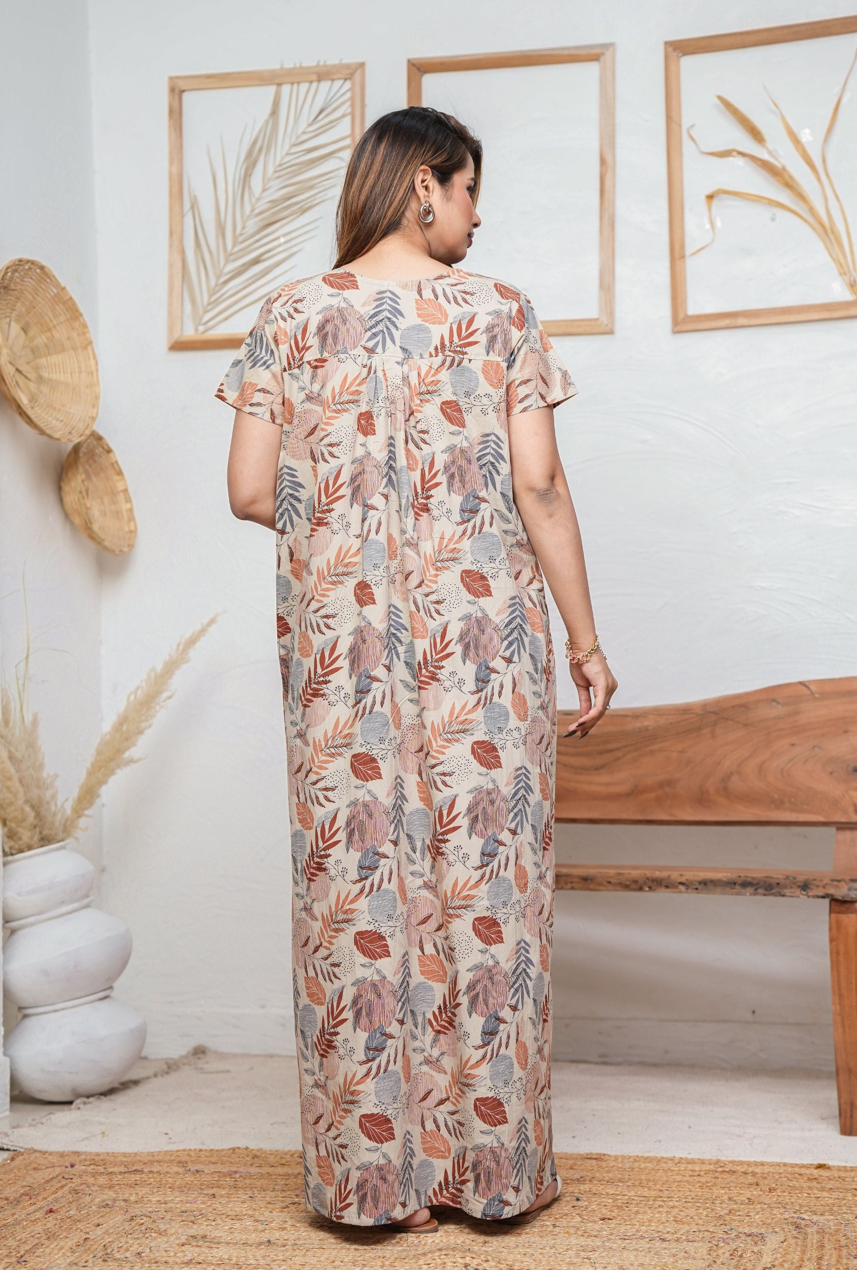 Elegant, soft & breathable – the Lining Leaves Grey Cotton Printed Nightwear Gowns is your go-to for luxurious sleepwear. Discover comfort in every thread.